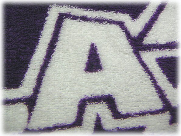 加工方法 ・書体の部分だけ白のままにしてタオル全体をカラーに染める。